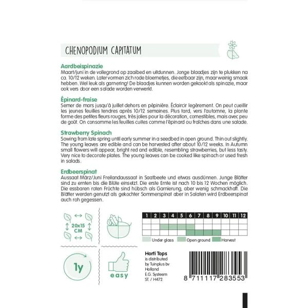 De rode bloemetjes van de aardbeispinazie zijn erg leuk voor ganering. De blaadjes kunnen worden gekookt als spinazie, maar ook vers door een salade worden verwerkt.