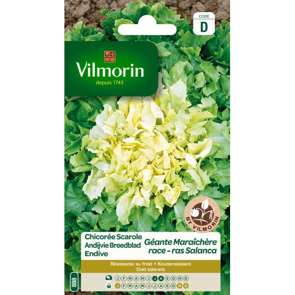 Deze Andijvie variëteit Salanca vormt prachtige, grote kroppen met een bleek hart. Zeer gemakkelijk te telen en verdraagt zowel hitte als koude.