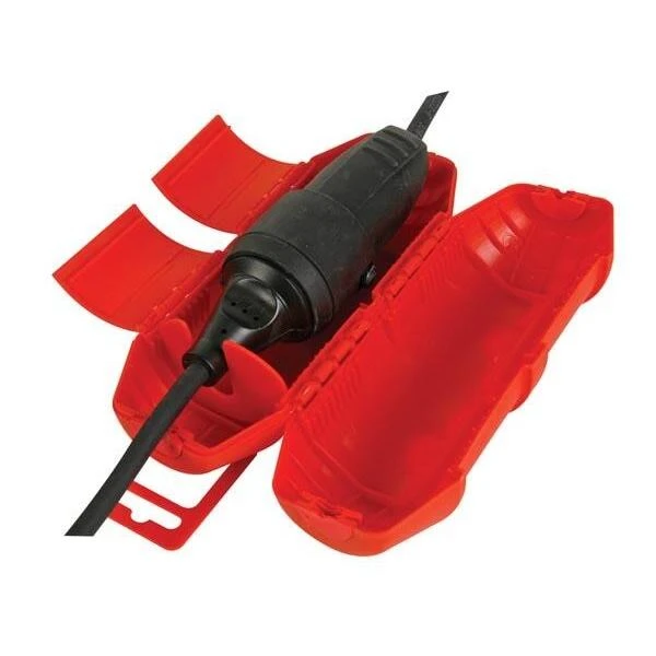 Deze houder beschermt stekkerverbindingen tegen vochtigheid, regen,… en is ook veilig voor kinderen. In de universele beschermhuls berg je op een veilige manier een stekkerverbinding op. De box maak je vervolgens stevig dicht met de twee voorziene clips zodat kinderen niet aan de stekker geraken.