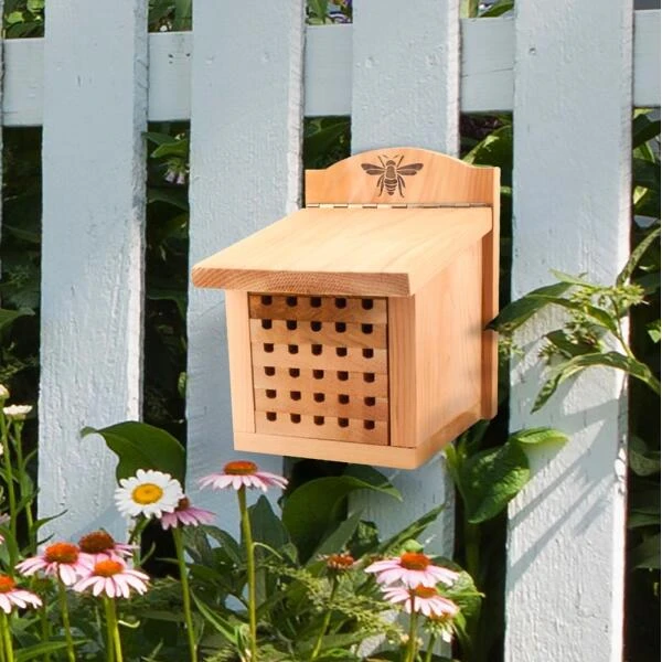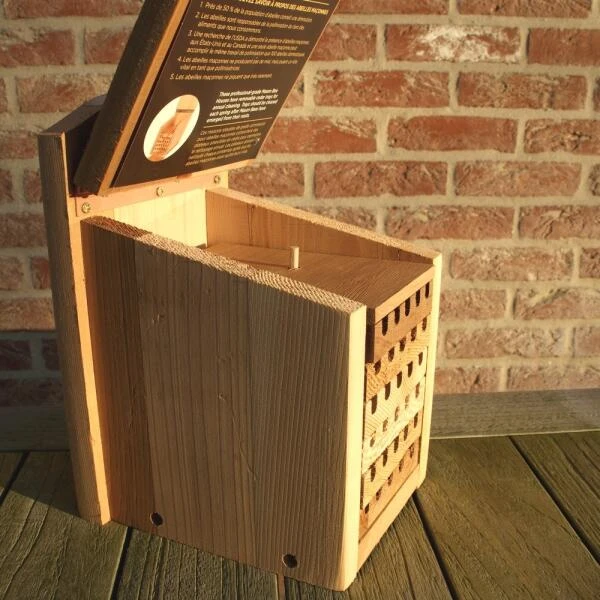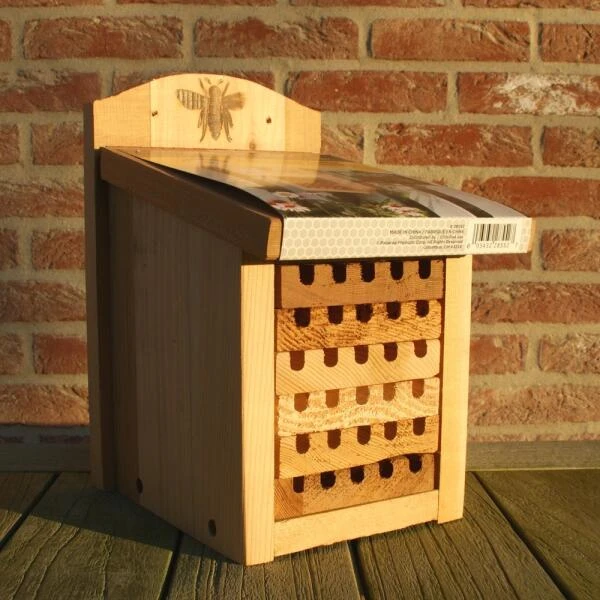 Geef dit bijenhuis en plek in jouw tuin en help mee om de bijenpopulatie in stand te houden. Want solitaire bijen zorgen voor de bestuiving van 1/3 de van onze voeding ter wereld. Metselbijen produceren geen honing en vervullen hun rol van bestuiver voor vele bloemen, bomen en gewassen in onze land- en tuinbouw.