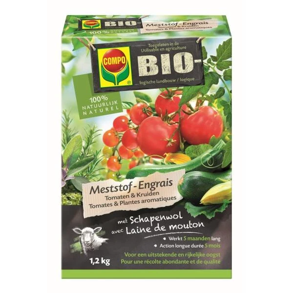 Deze innovatieve COMPO Bio meststof is een volledig organisch product dat voor 50% uit schapenwol bestaat. Samen met andere organische voedingsstoffen, die snel absorbeerbaar zijn, wordt de wol tot meststofkorrels geperst. Deze samenstelling geeft de meststof een onmiddellijke en langdurige werking van 5 maanden. Zo volstaat 1 bemestingsbeurt per seizoen.