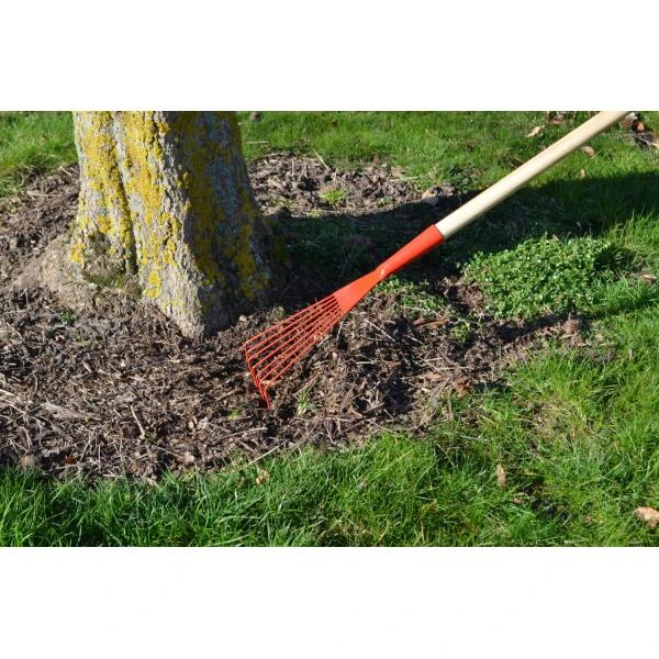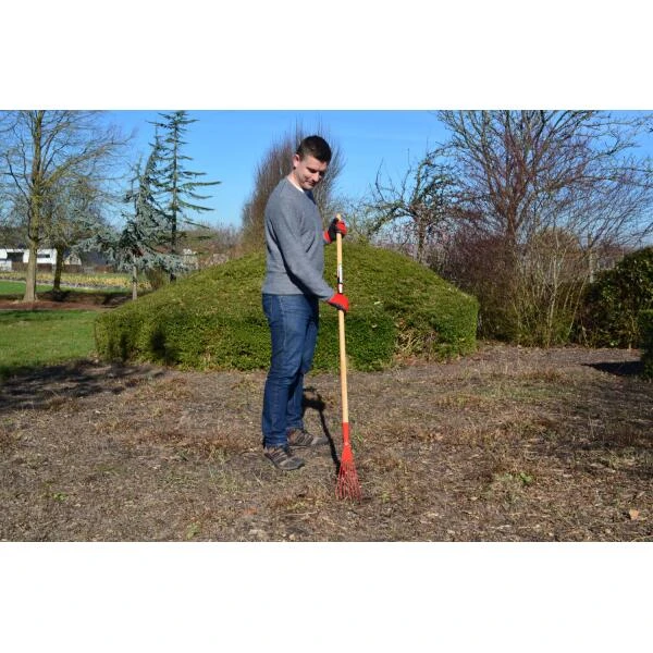 De bladhark is vervaardigd uit metaal en heeft een werkbreedte van 12 cm. Dankzij de essenhouten steel is het de ideale tool om de tuin tijdens de herfst netjes op te ruimen.