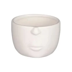 De witte bloempot beeldt de onderkant van een gezicht uit en heeft een minimalistische afwerking waardoor hij stijlvol oogt. Leuk te combineren met andere bloempotten en een echt pronkstuk in jouw moderne interieur!