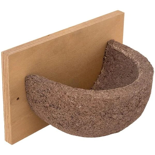 De boerenzwaluw is een echte bouwheer. Hij bouwt een komvormig nest uit klei onder het dak van een schuur of stal. Door de vele veranderingen in ons landschap wordt het steeds moeilijker om geschikt bouwmateriaal en een geschikte nestplaats te vinden. Met dit kunstnest kan je deze insecten vangende vogel dus een handje helpen.