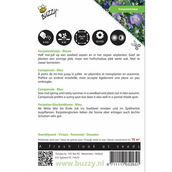Dit karpatenklokje is een meerjarige klokjesbloem die rijk bloeit in een violetblauwe kleur. In de border met wat lichte schaduw, komen de planten het best tot hun rechtt.