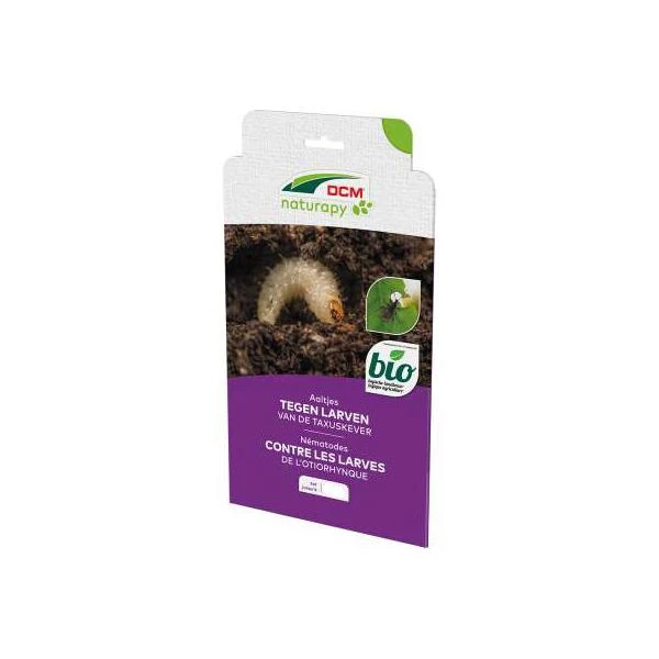 DCM Heteri-Guard, aaltjes om engerlingen in gazon te bestrijden. Deze microscopisch kleine wormpjes leven van engerlingen en vermenigvuldigen zich tot er zich geen meer in het gazon bevinden.