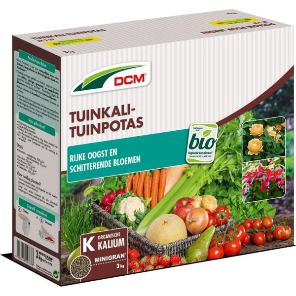 Tuinkali ook wel tuinpotas genoemd is een puur natuurlijke bron van kalium. Zuiver plantaardig, toepasbaar in de biotuin.