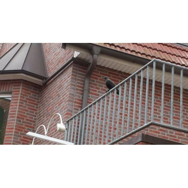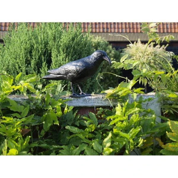 Deze levensgrote duivenverjager kraai zorgt ervoor dat duiven uit de buurt blijven.