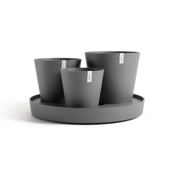 Combineer met de Ecopots Dubai drie (kamer)planten op één schotel. Met dit unieke model creëer je een leuke opstelling van drie planten in drie verschillende potmaten op een schotel met geïntegreerde wielen. Water geven wordt hierdoor een fluitje van een cent. Dat gebeurt gewoon via de schaal waardoor het water gelijkmatig verdeeld wordt over de planten en elke plant water kan opnemen volgens eigen behoefte. Zo blijft jouw vloer ook meteen gespaard van waterkringen.