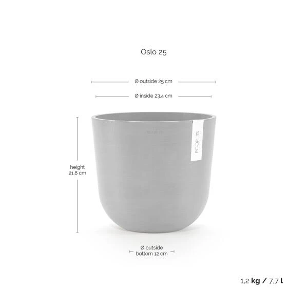 Klassiek en modern, dit combineert de Ecopots Oslo perfect in zijn design. Gemaakt van gerecycled materiaal en dankzij een rubberen stop in de bodem geschikt voor zowel binnen- als buitengebruik.