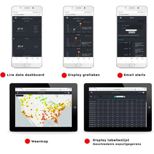 Na installatie met de Gateway zijn de gegevens overal beschikbaar, zelfs op reis kan je de temperatuur, vochtigheid, atmosferische druk en bodemvochtmetingen controleren.