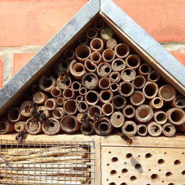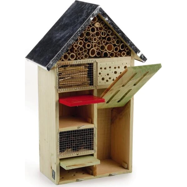 Insecten vervullen vele taken in onze tuinen. Ze zijn natuurlijke ongediertebestrijders en bestuivers van vele bloemen. Met dit insectenhotel met zeven kamers kan je verschillende soorten insecten de kans geven om zich te nestelen en te overwinteren. De natuurlijke woonplaats van vele insectensoorten wordt door veranderingen in hun omgeving bedreigd en dit is de manier om ze te helpen beschermen.