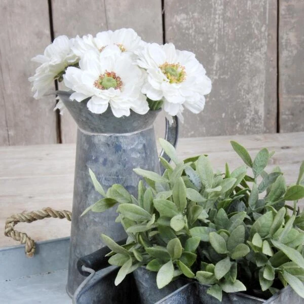Zink heeft een oude look en wordt al eeuwenlang gebruikt voor verschillende functies. Deze waterkan is niet alleen stijlvol maar kan ook eenvoudig gebruikt worden als gieter. Dankzij de grote schenktuit en het handvat is het gericht gieten zeer eenvoudig.