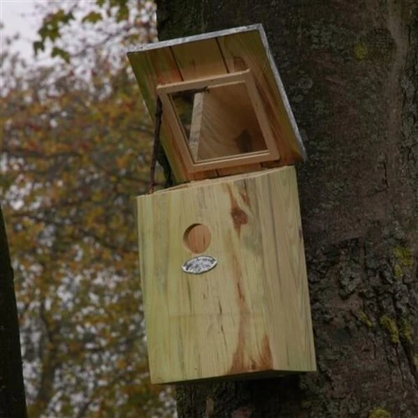 Met deze fraaie nestkast voor mezen kan je, dankzij de ingebouwde spiegel in het dak, de bewoners makkelijk observeren. Het dak kan vlot worden opgetild en dan kan men via de spiegel aan de binnenzijde in de nestkast kijken. Inspectie van de nestkast wordt aangeraden in het najaar in verband met de jaarlijkse schoonmaakbeurt. Inspecteren tijdens het broedseizoen moet uiterst voorzichtig gebeuren en niet te vaak om vervroegd uitvliegen te voorkomen.