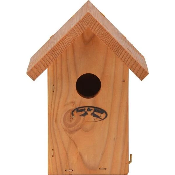 Met de voorziene opening aan de achterzijde kan je het vogelhuis eenvoudig ophangen. Hang het aan een boom of muur op een hoogte van ca. 2 meter op een goed verborgen plek tussen dicht struikgewas of klimplanten.