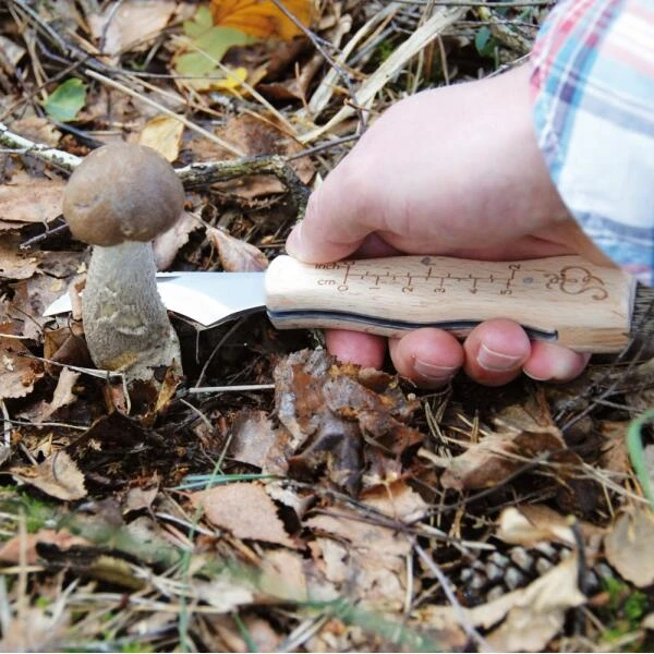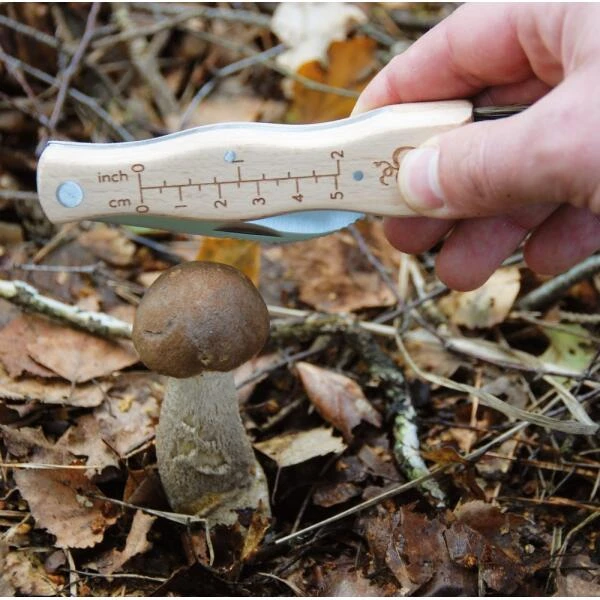 Met de cm-meetweergave op het handvat kan je ook het formaat van de paddenstoel meten. In sommige gebieden in Europa is er lokale regelgeving waarbij het verzamelen van ondermaatse exemplaren van bepaalde soorten verbiedt.