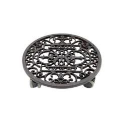 Deze uitvoering is vervaardigd uit gietijzer en heeft een dikte van ca. 9 mm. De plantentrolley is voorzien van 4 wieltjes en maakt het verzetten van zware bloempotten een gemakkelijke klus.