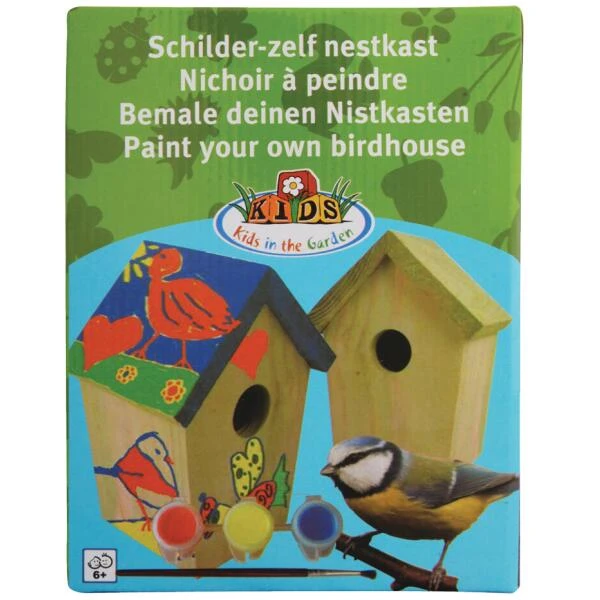 Laat je kinderen creatief zijn met dit vogelhuisje om te schilderen. Met de bijgeleverde verf en kwast kunnen ze het naar eigen verbeelding personaliseren. Met de kleuren geel blauw en rood kom je al een heel eind en bovendien kan je geel en blauw gaan mengen om een groene kleur te krijgen of meng je rood met geel om een oranje kleur te krijgen.
