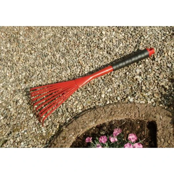 Met deze fijne handhark bereik je elk klein tuinhoekje. Handige manuele hark om elk plekje in de tuin schoon te maken, ook handig in bloempotten en verhoogde moestuinbedden na het wieden.