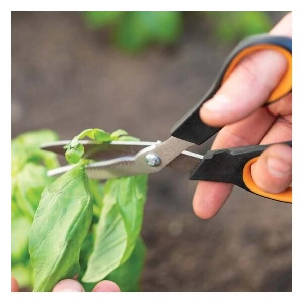 Ergonomische groentenschaar van Fiskars om vlot en eenvoudig groenten te oogsten. Ideaal voor het maken van gezonde sneden op een verscheidenheid aan kruiden en het snijden van een breed scala aan groenten in de tuin.