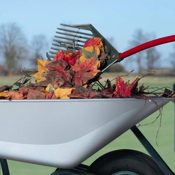 Door de opstaande zij- en achterkanten van het werkblad kan je in รฉรฉn beweging grote volumes opscheppen en verlies je niets bij het uitzeven van grond, zand of grind. Zo behoud je jouw humusrijke grond en zijn de gevulde kruiwagens een stuk minder zwaar. De licht naar boven geslepen tanden zorgen ervoor dat de hark niet vastloopt in de grond.
