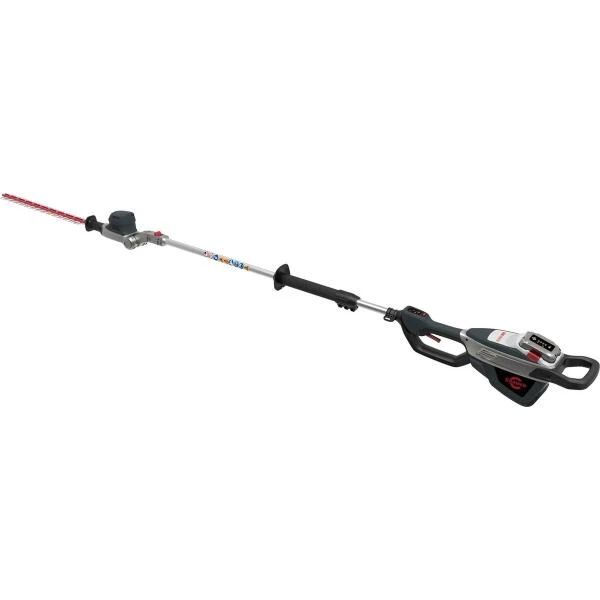 De heggenschaar heeft een draaihoek van -45° tot 90°, verstelbaar in stappen van 15°. Met de omkeerbare snoeirichting kan je geblokkeerde messen terug lossen. Wordt geleverd zonder batterij en lader, maar zijn optioneel verkrijgbaar: