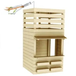 Het speelhuis is gemaakt uit kwalitatief gedroogd hout.