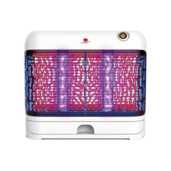 Deze innoverende insectenlamp werkt met ultraviolet en blauw LED-licht. Door het licht worden vliegen, motten, muskieten, muggen en andere vliegende insecten aangetrokken in een electrisch geladen rooster en worden vervolgens pijnloos gedood. De dode insecten vallen in het verzamelbakje dat makkelijk kan verwijderd worden voor het ledigen en schoonmaken.