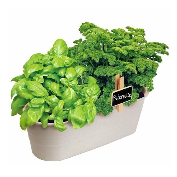 Jouw eigen biologische kruidentuintje, ideaal voor op de vensterbank. Het bakje is vervaardigd van bamboepoeder en is daardoor geheel afbreekbaar. Het kweekset wordt geleverd met potgrond en twee zakjes met zaden van basilicum en peterselie waarmee je een provencaalse toets kan geven aan jouw gerechten.