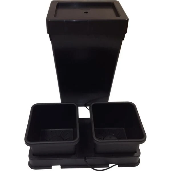 Met dit ingenieuze bewateringsinstallatie hebben jouw planten een waterreserve voor maximaal 14 dagen. Het waterreservoir heeft een inhoud van 47 liter en staat met een waterdarm in verbinding met een bassin waarin 2 potten staan van 8.5 liter. Werking op basis van de zwaartekracht in combinatie met een regelbare vlotter.