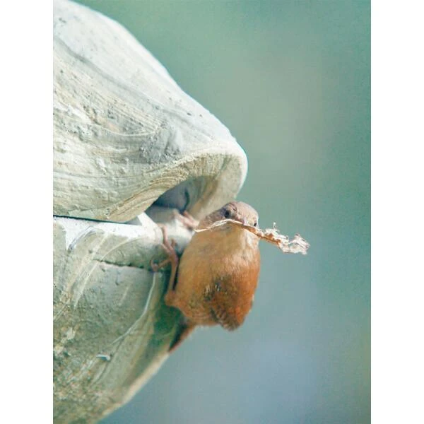 Het bolvormige Schwegler ‘nesthulpmiddel’ biedt een uitstekende schuilplaats voor de winterkoning voor het uitbroeden en het opvoeden van de jongen. Gezien dit vogeltje steeds een lage nestplaats verkiest (ca. 80 tot 150 cm) heeft het alle baat bij een veilig onderkomen dat weerstand biedt aan de verschillende vijanden waaronder de huiskat.