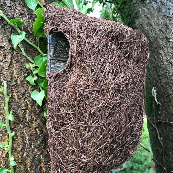 Deze namaak nestbuidel is een unieke habitat voor verschillende tuinvogels zoals de winterkoning, het roodborstje, het goudhaantje en de kwikstaart…Maar ook de slaapmuis en de bosmuis kunnen hun intrek nemen in dit nest.