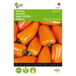 Paprika Snacking mini Oranje Naranja is een soort met een lekkere fruitige smaak met een kleine pittige toets. De vruchten zijn aanvankelijk groen van kleur maar worden diep oranje na verloop van tijd. Ze zijn zeer geschikt om te verwerken in salades. Het is een zeer productieve soort die zowel in de kas als buiten in potten kan gekweekt worden.