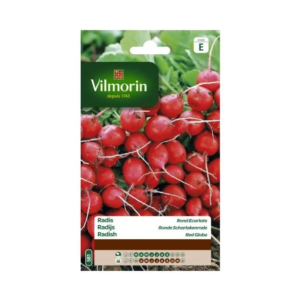 Deze vroege variëteit, geschikt voor teelt in vollegrond, vormt mooie ronde donkerrode radijsjes.