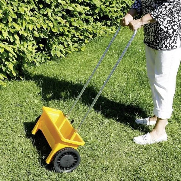 Deze handige strooiwagen kan je in elk seizoen gebruiken. In het voorjaar of in de zomer kan je hem gebruiken om gekorrelde meststoffen of graszaad gelijkmatig uit te strooien. In de winter is deze zeer geschikt voor strooizout. Door middel van een hendel kan je de gewenste strooihoeveelheid instellen.