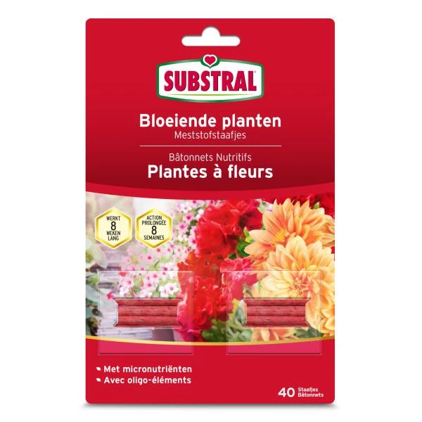 Voorgedoseerde voeding Substral voor bloeiende planten. Bevat alle elementen en micro-nutriënten die onontbeerlijk zijn voor een evenwichtige groei en voor de verzorging van jouw bloeiende planten. Door deze meststof verkrijg je planten die meer weerstand hebben, uitbundig en kleurrijk bloeien.