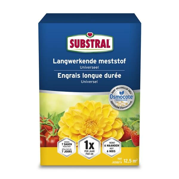 Osmocote meststof van Substral geeft maximaal resultaat met een minimale inspanning! Deze nieuwe universele meststof werd speciaal ontwikkeld voor bloemen, struiken en bomen, in volle grond en in potten maar kan ook gebruikt worden in de moestuin om jouw groenten en fruit een boost te geven.