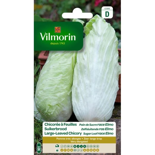 Superieur ras Suikerbrood Elmo met zeer goede smaak waarvan de bladeren zeer regelmatige kropppen vormen die tot 40 cm hoog worden. Suikerbrood bevat vitamines (A, B, C en K), vezels en mineralen (calcium, kalium en ijzer).