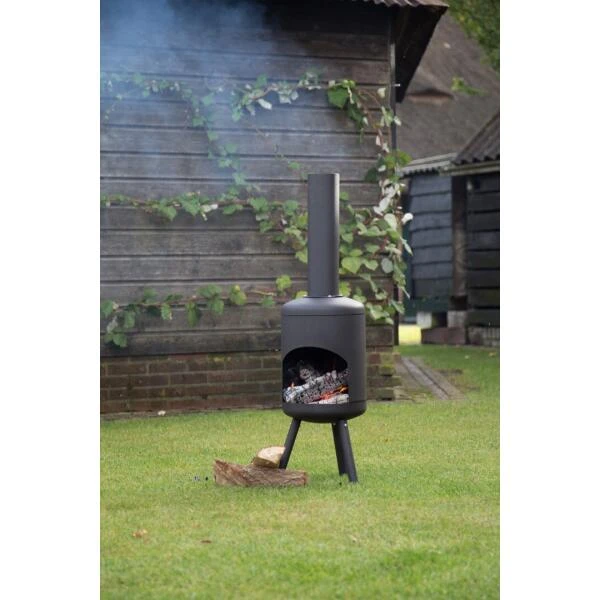 De rook wordt via de bijgeleverde schoorsteen afgevoerd en met de driepotige standaard staat de Fuego stevig op zijn plek.