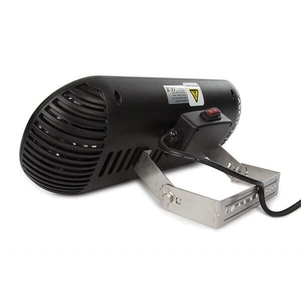 De elektrische terrasverwarmer is gemakkelijk op te hangen aan het plafond of aan een partytent. Dit infrarood-verwarmingssysteem heeft een stalen en aluminium behuizing en is voorzien van een hangketting.