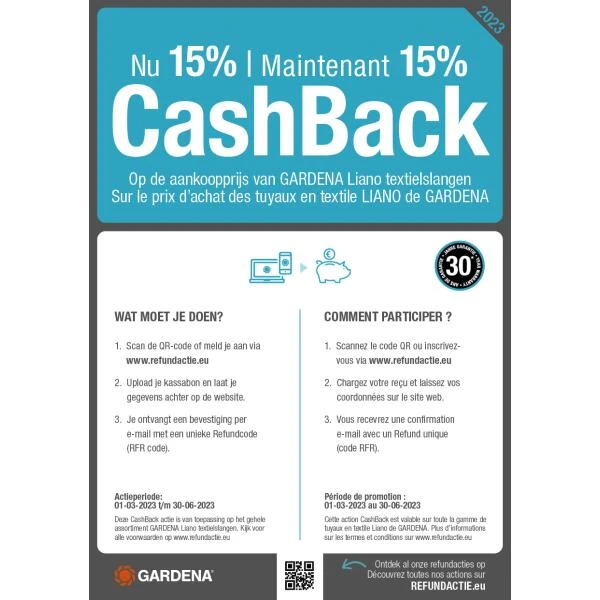 De GARDENA textielslang Liano™, gemaakt van zeer duurzaam textiel, is bijzonder handig in gebruik en uitzonderlijk wendbaar. Zelfs als de slang over het terras wordt gesleept of in contact komt met doornachtige rozenstruiken, zal hij niet worden beschadigd. Bovendien is de slang met een scheurdruk van 35 bar geschikt voor gebruik met elke waterdruk.