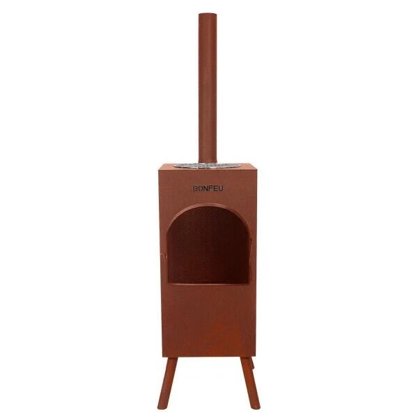 Buitekachel BONFEU BRASERO BONCARRE is een strakke tuinhaard met grillrooster en wokring. De perfecte combinatie van een sfeervol haardvuur en gezellig buitenkoken.Verwijder de meegeleverde deksel en plaats het grillrooster of de wokring op de haard. De deksel is eventueel ook nog om te draaien en als kookplaat te gebruiken. Het meegeleverde vonkenscherm zorgt voor extra veiligheid.