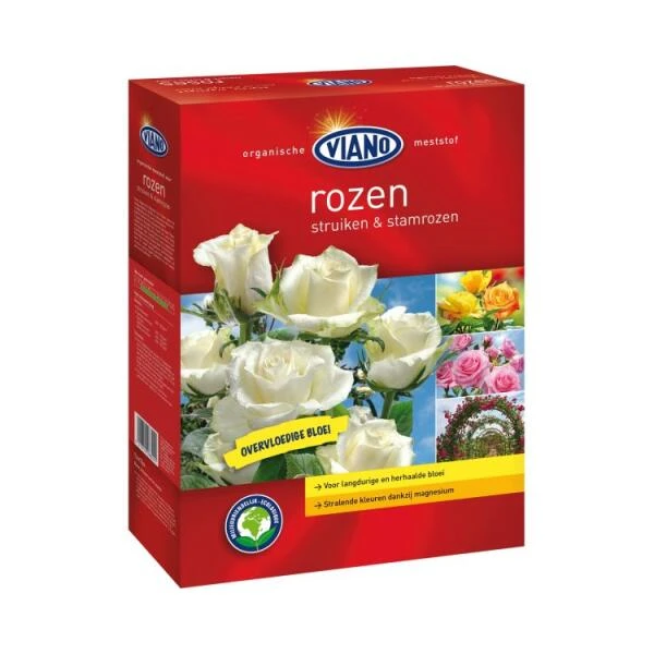 Organische minerale meststof voor rozen, rozenstruiken, klim- en stamrozen.