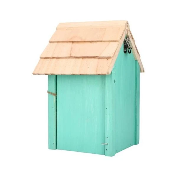 Het vogelhuisje heeft een invliegopening van 32 mm diameter en kan aan de zijkant eenvoudig worden geopend om schoon te maken. Achteraan is er een ophangoog voorzien om het op te hangen aan een boom of muur. Geschikt voor vele soorten vogels o.a. boomklevers, mussen en koolmeesjes.