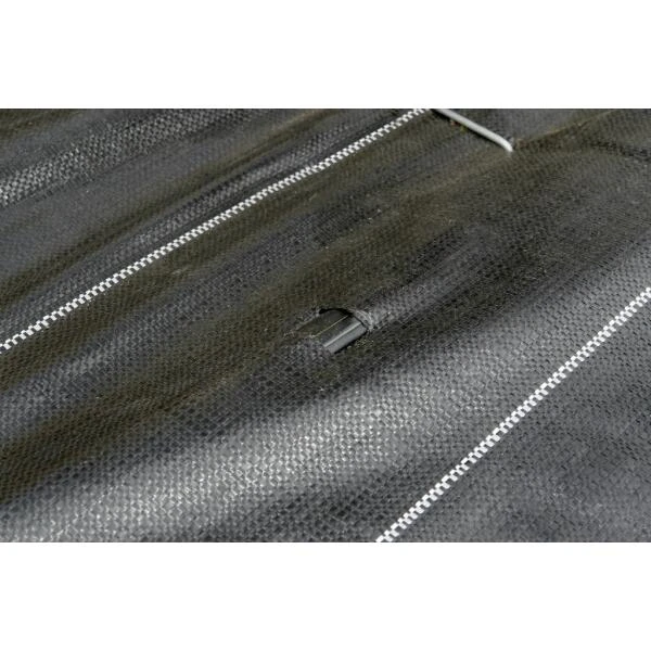 Handige gronddoek met geïntegreerde druppelirrigatie. Door het aanbrengen van dit systeem onder een haag bijvoorbeeld dien je minder water te geven en ook geen onkruid te wieden. De irrigatiebuis is volledig geïntegreerd in de gronddoek.