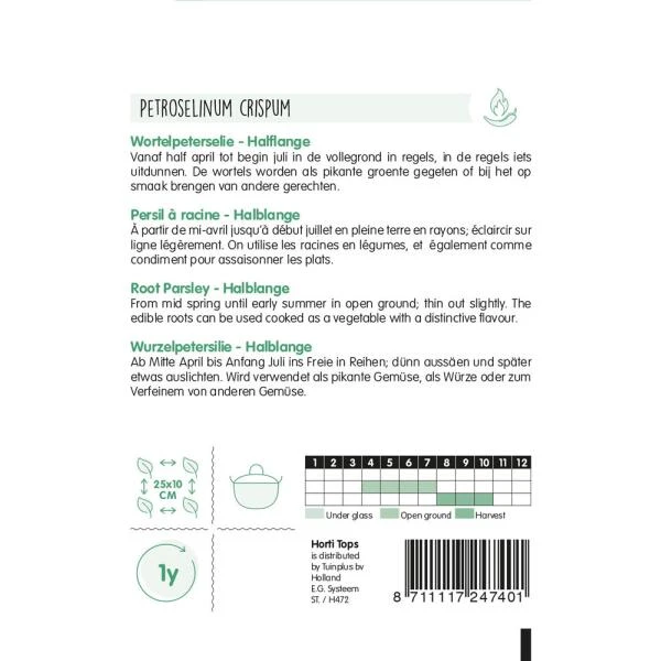 Zaaien vanaf half april tot begin juli in volle grond in regels, nadien iets uitdunnen. Deze wortels worden als pikante groente gegeten of gebruikt om gerechten op smaak te brengen.