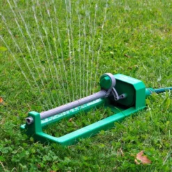 De sproeier beregent ongeveer 250 m² en heeft 4 bewateringsposities en 36 tussenstanden.